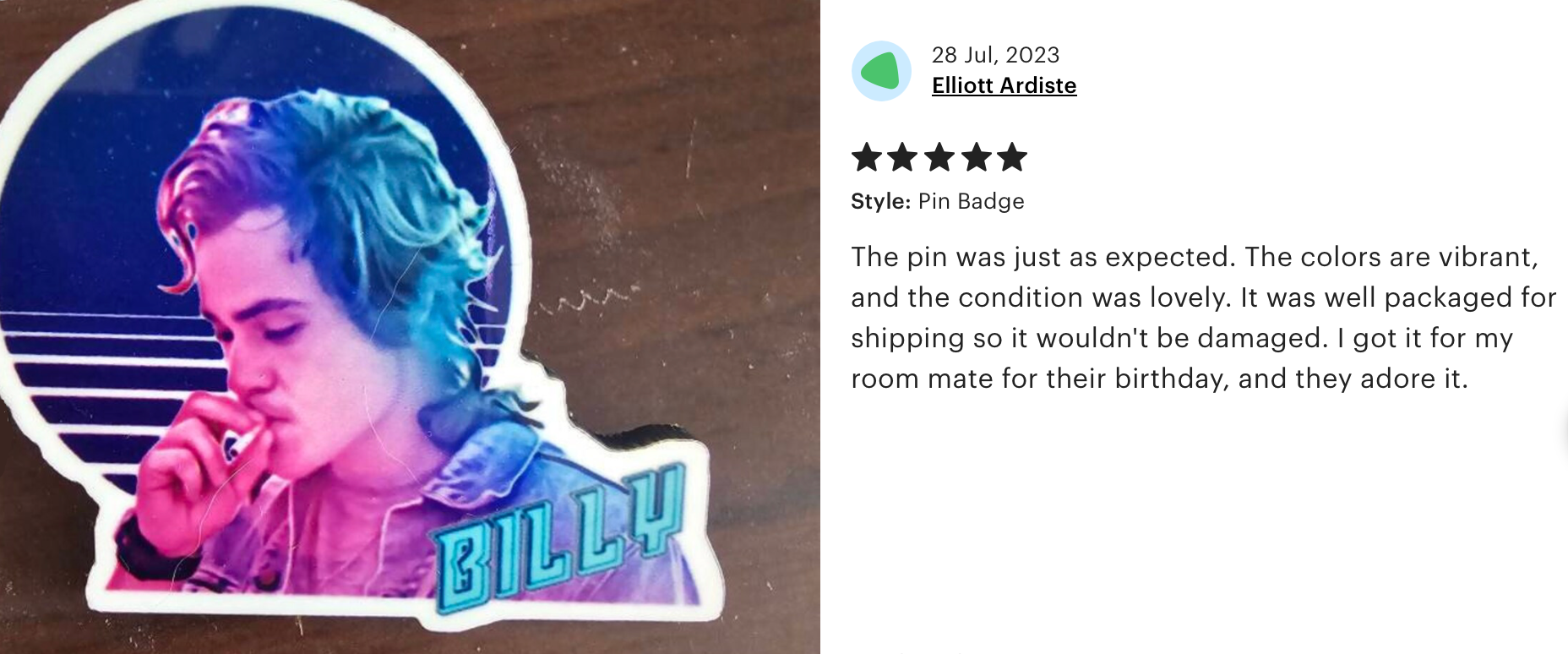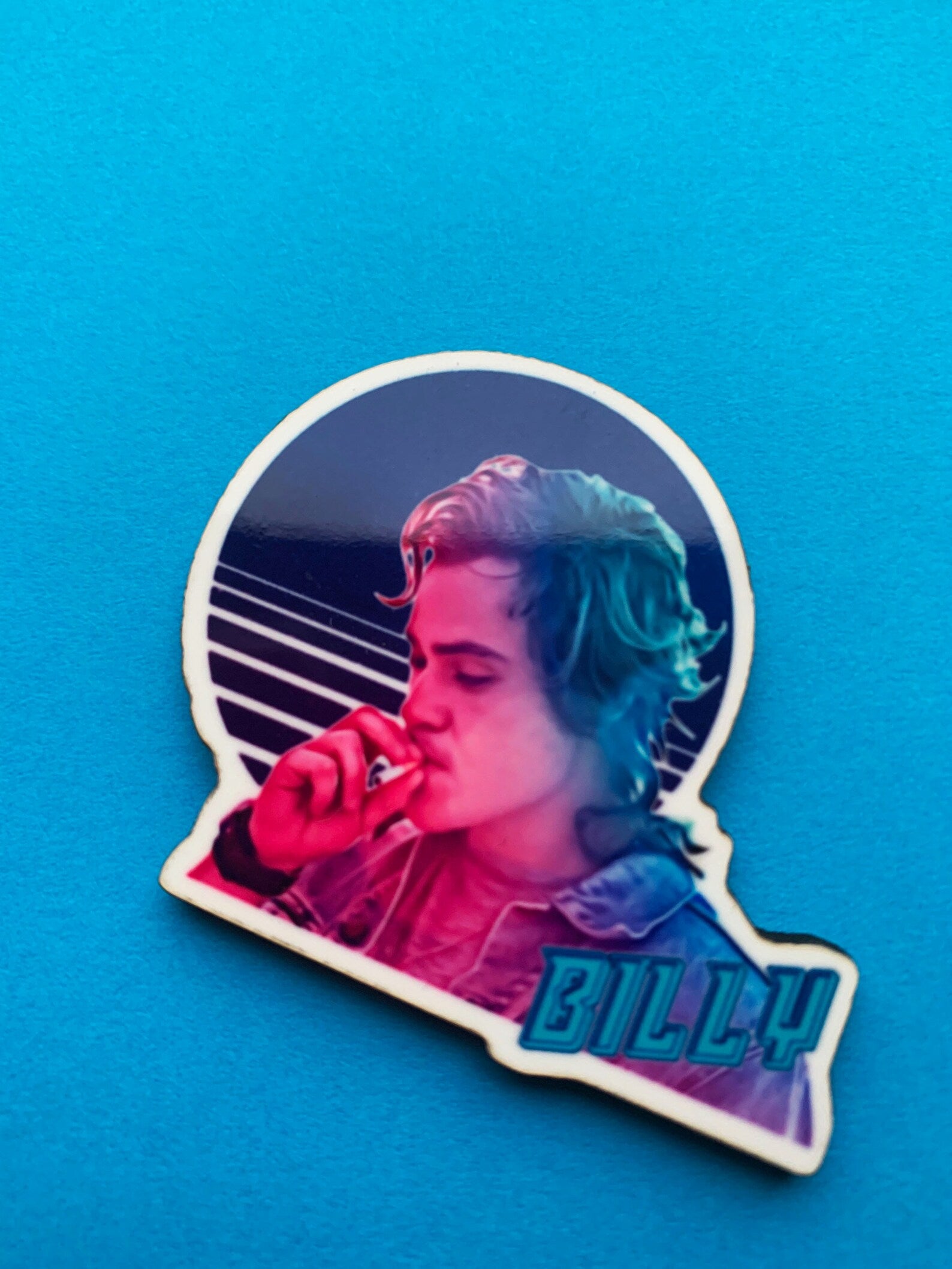 Say hello to the bad boy of Hawkins with this Billy Hargrove Pin Badge or Magnet from Stranger Things! Dripping with rebellious charm, mullet magic, and just the right amount of danger, this captures Billy Hargrove in all his brooding, lifeguard-glory. Whether you’re strolling by the pool or revving up your Camaro, this little token adds a splash of attitude and 80s heat to your style. Warning: may cause intense stares, slow-motion walks, and sudden cravings for rock ballads. 🕶️🔥🚬
