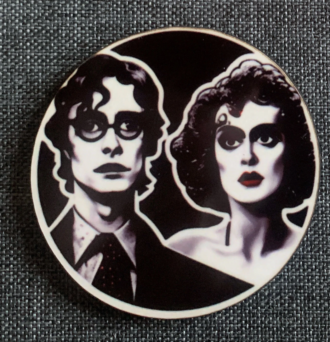Get ready to “step into the time warp” with the Brad Majors and Janet Weiss Pin Badge or Magnet! This black-and-white beauty perfectly captures the iconic, wide-eyed innocence of our beloved couple from The Rocky Horror Picture Show—before they got swept up in the wild and wonderfully strange world of Dr. Frank-N-Furter. With their classic 50s charm, Brad and Janet are the perfect contrast to the weird and wonderful world around them, and now you can carry them with you wherever you go! Whether you’re a die-hard Rocky Horror fan or just love a good classic movie duo, this will add a dash of quirky nostalgia to your collection. Perfect for those who love a little black and white simplicity with a splash of rebellious fun! Don’t miss your chance to have Brad and Janet by your side—no matter how weird things get! 💋🎤🎬