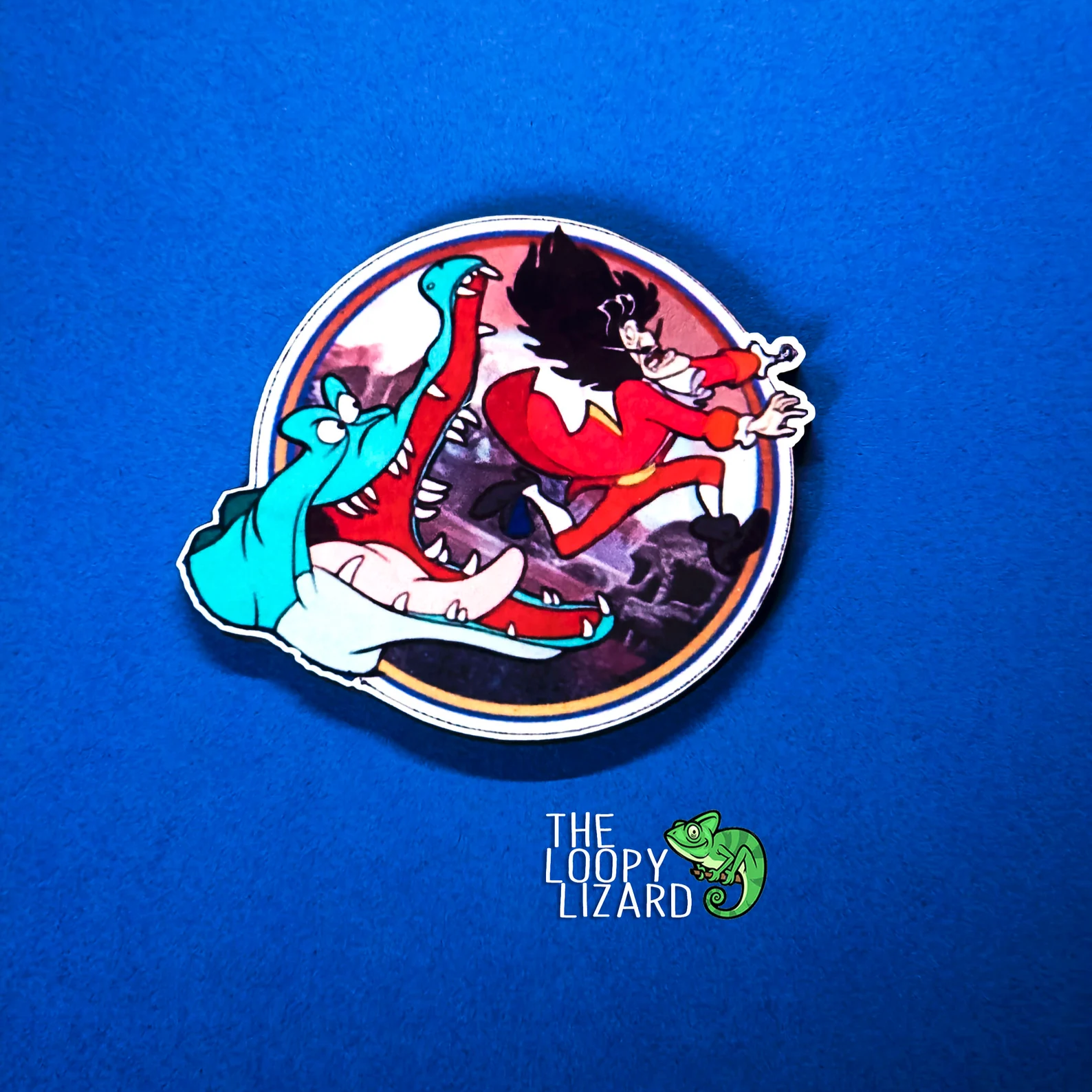 Ahoy, fellow adventurer! Ready for a wild ride? Our Captain Hook Crocodile Escape Pin Badge or Magnet captures the heart-pounding moment when Hook narrowly avoids the chomping jaws of that tick-tocking terror from Neverland! This cheeky accessory features Hook in full flight, eyes wide and sword in hand, as he dashes away from the crocodile hot on his tail. With vibrant colours and a playful design, this is the perfect way to bring a bit of Neverland’s excitement to your style. Add a touch of adventure and a dash of danger to your daily life – it’s Hook versus the croc, and who knows who’ll win? Grab yours now and join the chase! ⚔️🐊💨