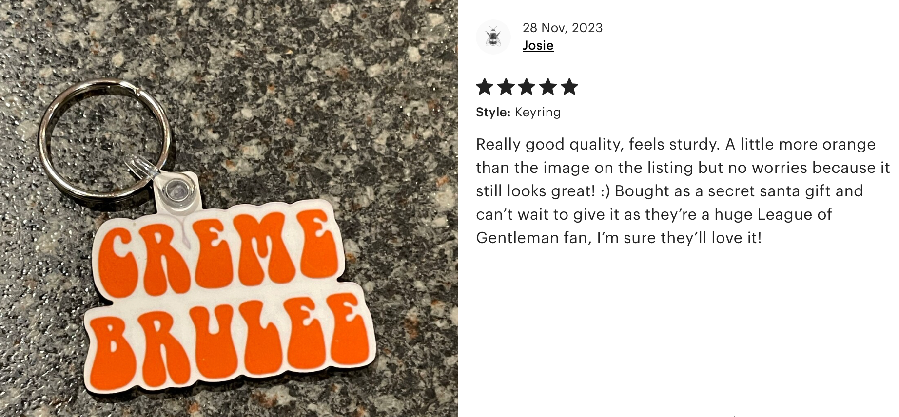 Get ready to add a dash of dark humour and sophistication to your keychain with the Creme Brulee Keyring from the League of Gentlemen! This keyring isn’t just a piece of merch; it’s a tribute to the unforgettable line that will have you quoting Royston Vasey’s finest moments wherever you go. Crafted with style and a sprinkle of cheeky charm, the words “Creme Brulee” are emblazoned in a bold, eye-catching design, making this keyring the perfect conversation starter for fans of the show. Whether you’re a die-hard League of Gentlemen fan or just love a good quirky accessory, this keyring is a must-have. You can practically hear the iconic character’s voice just by looking at it! Don’t miss your chance to get a piece of the action… because once you’ve seen it, you’ll never forget it!🍴🍮✨
