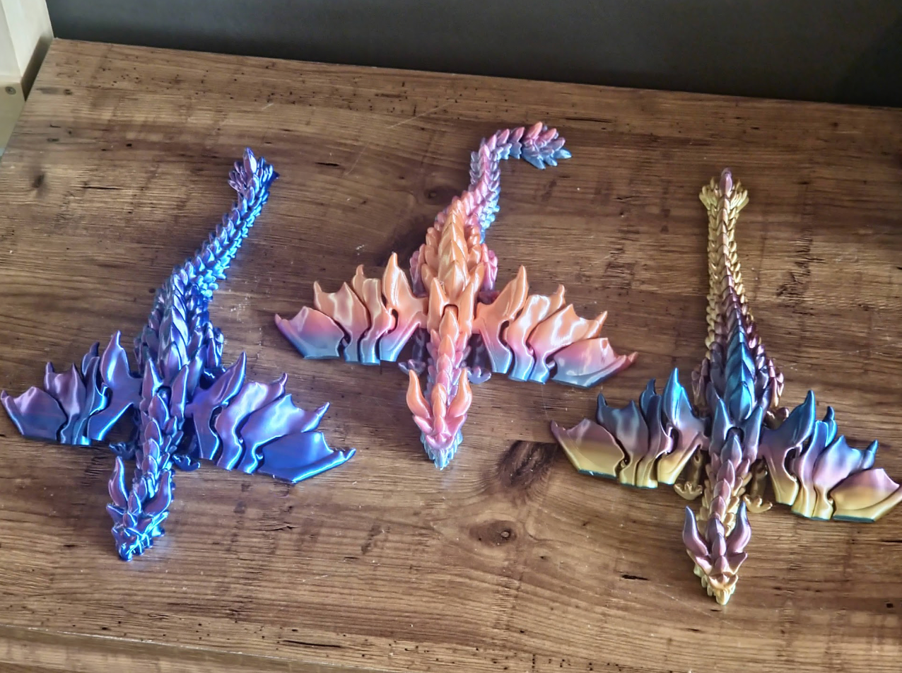 Soar into fantasy with our Flexi Winged Dragon—the ultimate fusion of fidget fun and mythical flair! With a body that wriggles, wings that stretch with pride, and a personality as fiery as a volcano full of treasure, this dragon isn’t just a desk ornament—it’s your new favourite sidekick. Whether it’s guarding your snacks, flexing its wings mid-flight, or simply striking epic poses, this creature is born to dazzle. Printed in stunning detail and ready to fly into your collection, it’s time to let your imagination take wing! 🐉🪽💨