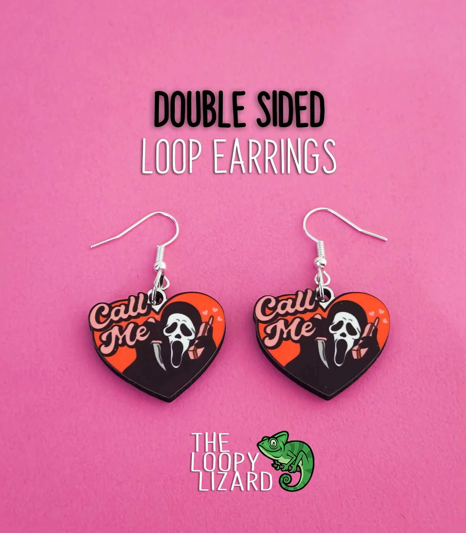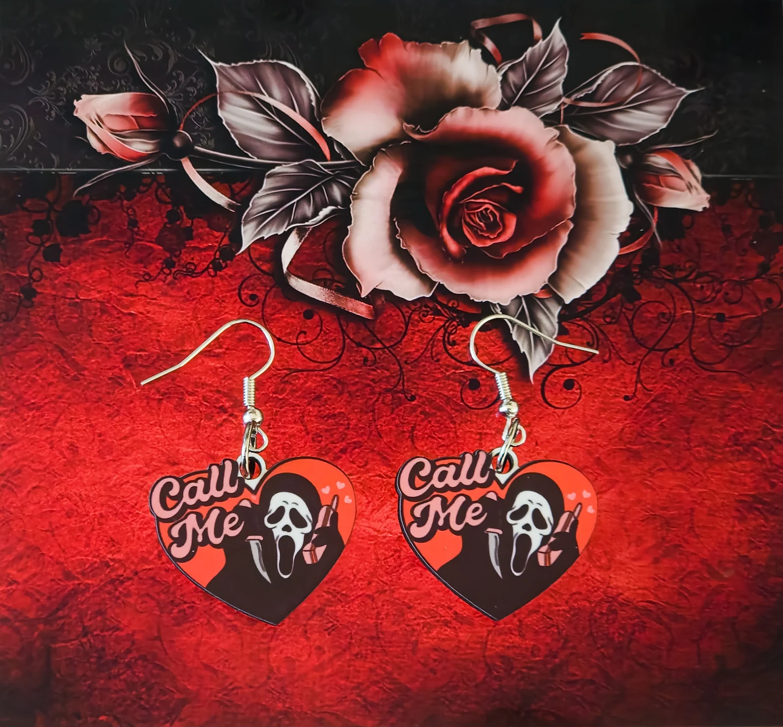 Get ready to slash your way into style with our Ghostface - Call Me Heart Earrings—the perfect accessory for anyone who’s into a little bit of spooky with a whole lot of sass! These earrings feature the iconic Ghostface inside a killer heart, because nothing says “I’m haunting your dreams and your heart” quite like this. Whether you’re in the mood for a frightfully fun night out or just want to add some creepy-cute charm to your look, these earrings are ready to dial up your style! So, grab them now and let your ears say, “I’m not just a scream queen, I’m also heart-stoppingly stylish!”💀📞❤️