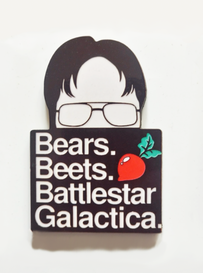 Bears, Beets, Battlestar Galactica Pin Badge/ Magnet - The Office