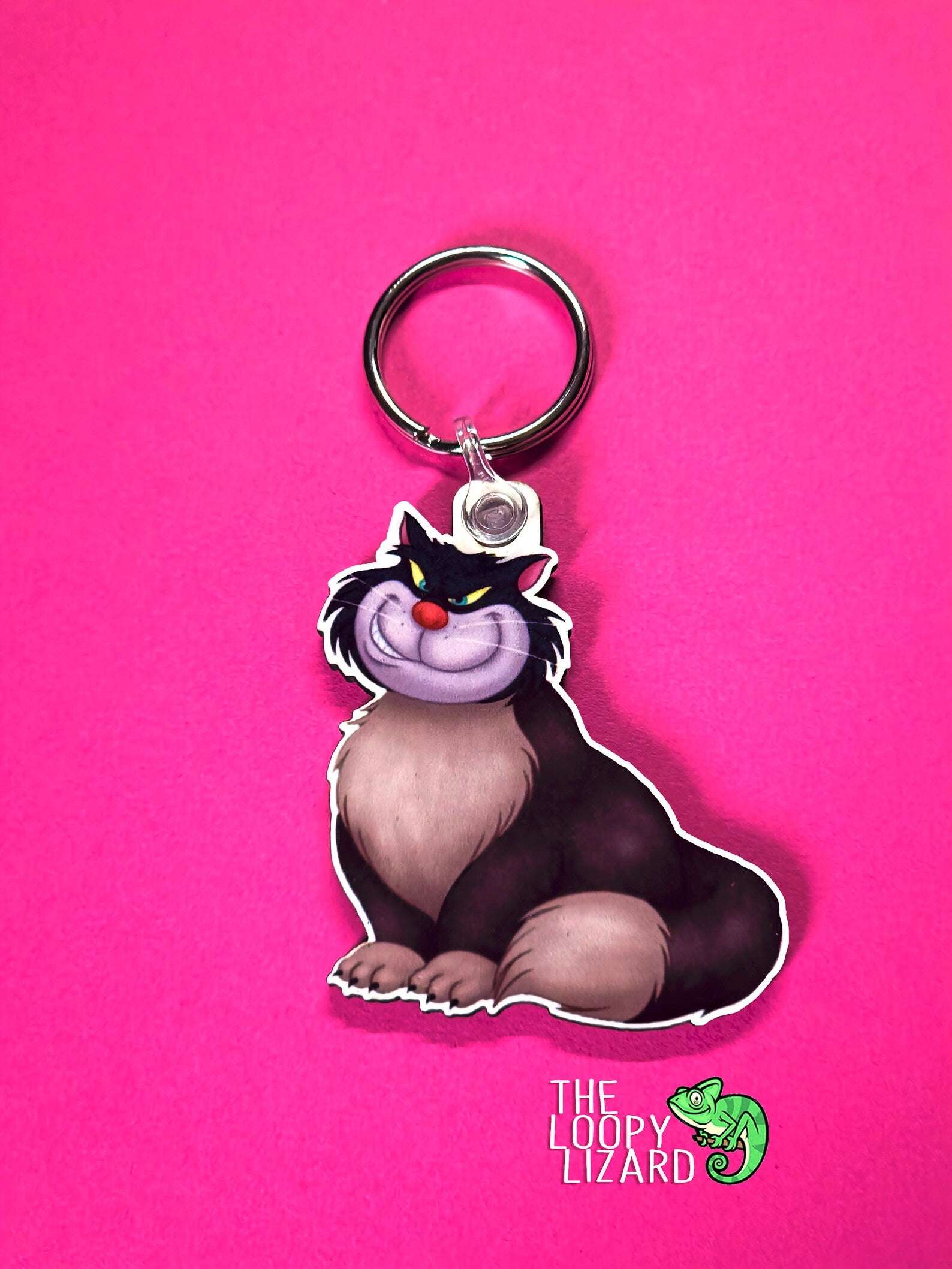 Unleash your inner mischief with the Lucifer Sat Keyring from Cinderella! This charming keyring features none other than Cinderella’s wickedly adorable, yet slightly mischievous, feline companion—Lucifer. Capturing the sassy charm of the cat as he lounges in his classic, lazy pose, this keyring is perfect for adding a dash of feline attitude to your daily accessories. Whether you’re a fan of Cinderella, love a little touch of trouble, or just can’t resist that devilish cat charm, this keyring will be the purrfect addition to your collection. So why wait? Grab it today and show the world that you’re feline fine, no matter what! 🐱🐾🖤
