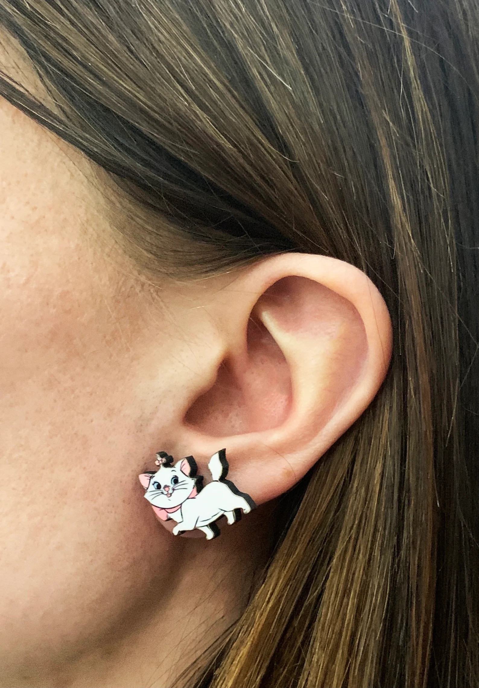 Add a dash of diva and a sprinkle of sass to your style with our Marie Earrings! These purr-fectly precious accessories channel the classy charm of everyone’s favourite pampered Parisian kitten from The Aristocats. With her signature pink bow, wide-eyed wonder, and a personality as fluffy as her fur, Marie is ready to dangle daintily from your ears and remind the world: “Ladies don’t start fights, but they can finish them!” Whether you’re strolling through the city or lounging like royalty, these earrings are the cat-chy statement you didn’t know you needed. 👑🎀💖