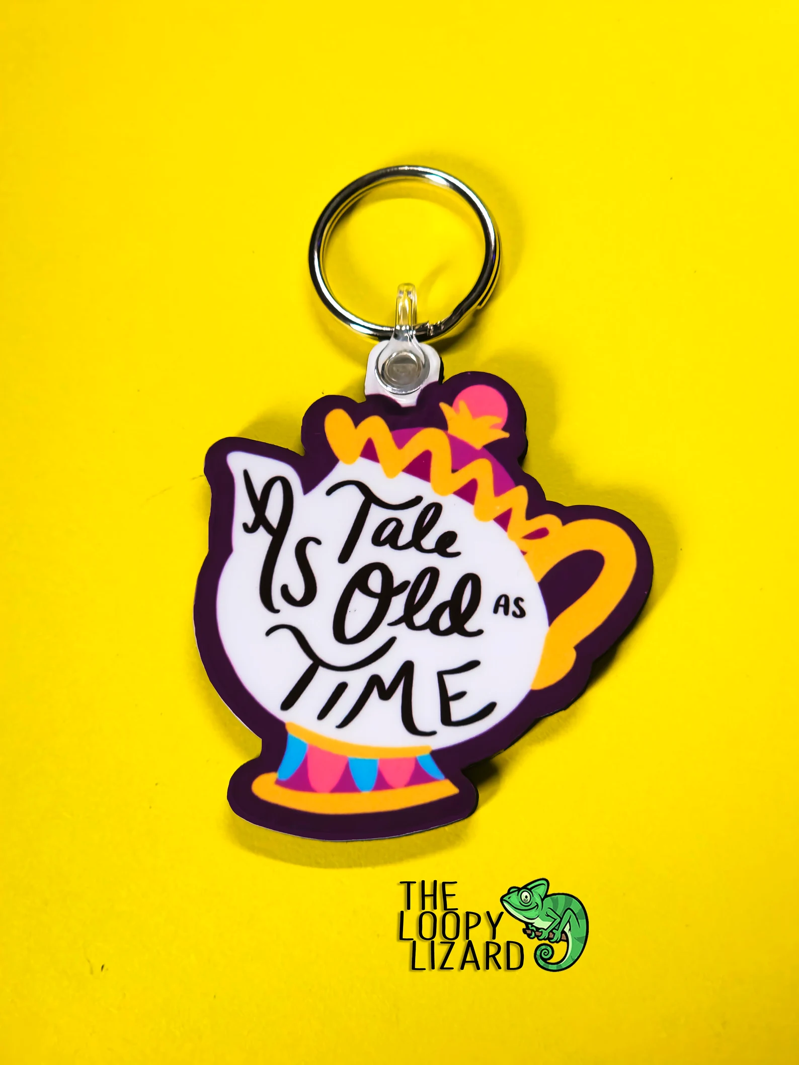 Brew up some nostalgic magic with the Mrs. Potts “Tale as Old As Time” Keyring! Featuring the charming outline of everyone’s favourite enchanted teapot, this keyring is steeped in whimsy and classic elegance. With the iconic phrase “Tale as Old As Time” etched inside her delicate silhouette, it’s a sweet little reminder that true love and warm tea never go out of style. Whether you’re a Beauty and the Beast fan or just need a daily dash of Disney enchantment, Mrs. Potts is ready to tag along and spill some joy wherever you go. ☕🎶💜