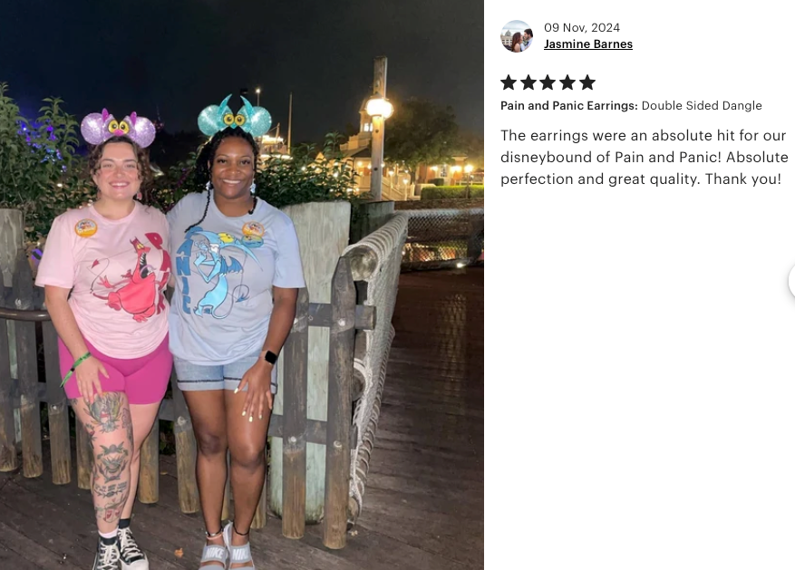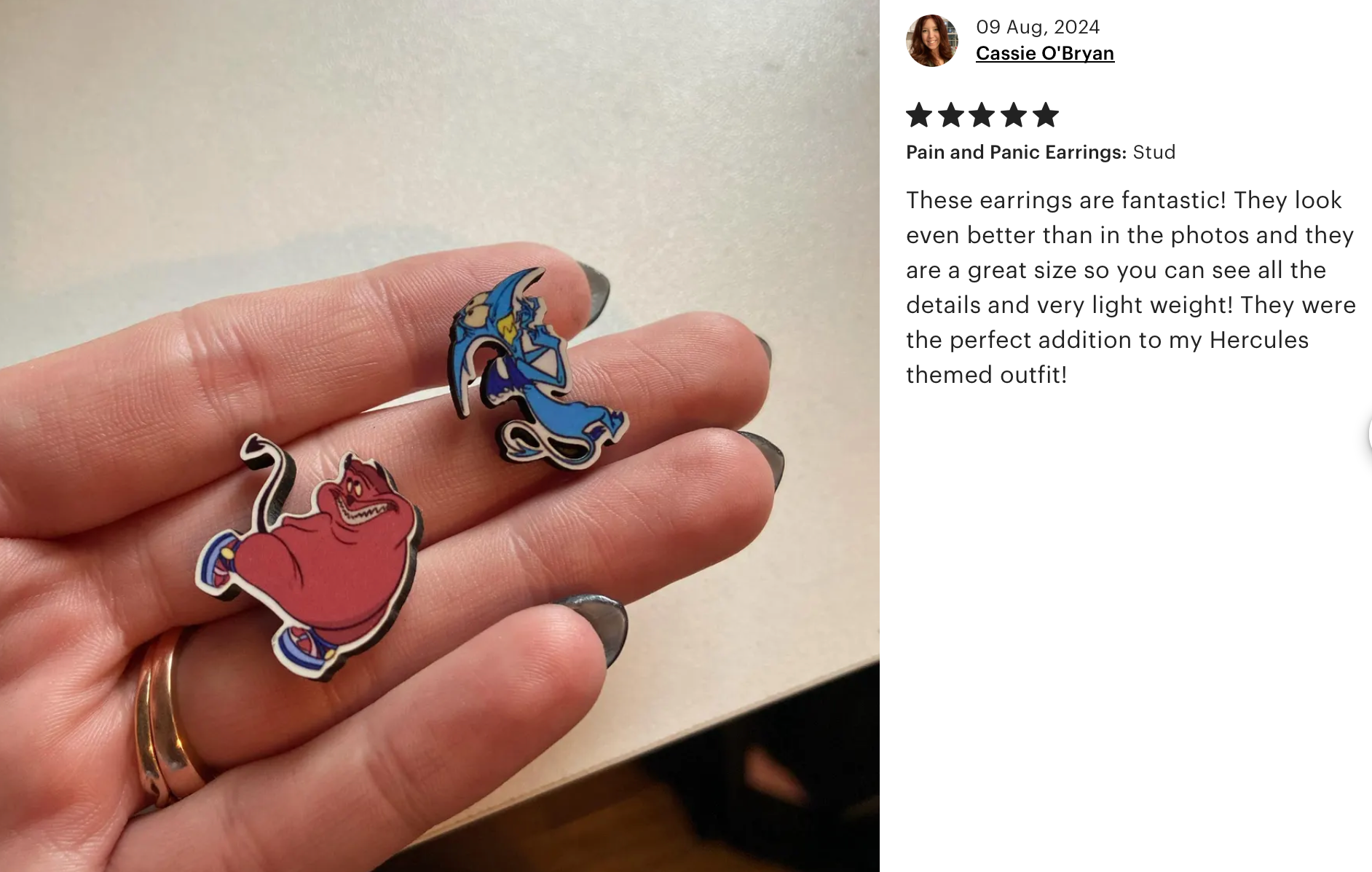 Calling all chaos lovers and Disney villains-in-training—our Pain and Panic Earrings are here to wreak adorable havoc on your earlobes! Featuring everyone’s favorite bumbling minions of Hades, these earrings are perfect for anyone who thrives on drama, dark humor, and slightly panicked energy. Wear Pain on one ear, Panic on the other, and let your inner hot mess shine with mythological flair. They’re cute, they’re chaotic, and they scream “we’ve got it under control!” Perfect for plotters, schemers, or anyone who lives for the fabulous fail. 🔥😈💅