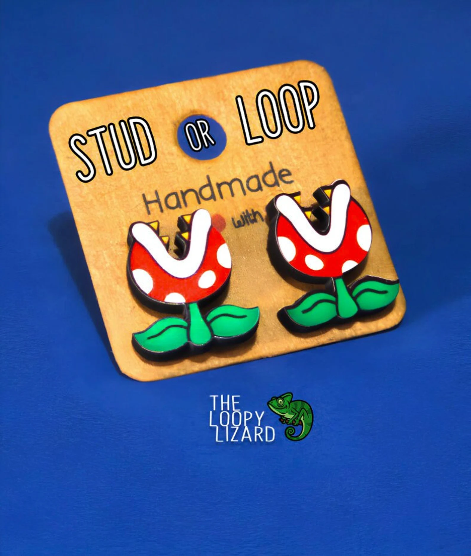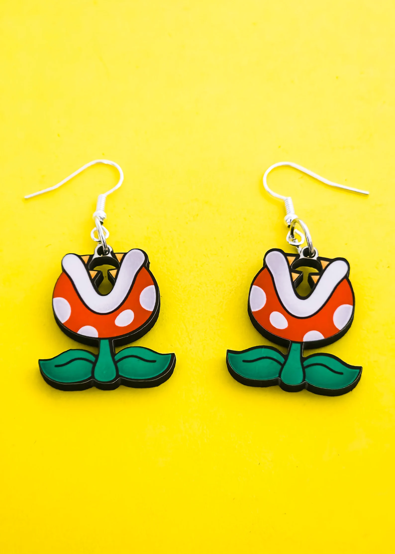 Ready to take your accessory game to the next level? These Piranha Plant Earrings are here to add some bite to your look! With their fierce, toothy grin and vibrant green leaves, these earrings bring the playful menace of Mario’s most iconic enemy straight to your ears. Whether you’re conquering the Mushroom Kingdom or just slaying fashion, these earrings will make sure you stand out in the best way possible. Don’t be afraid to let your style grow with these adorable yet dangerous little plants! 🎮🍄🌱