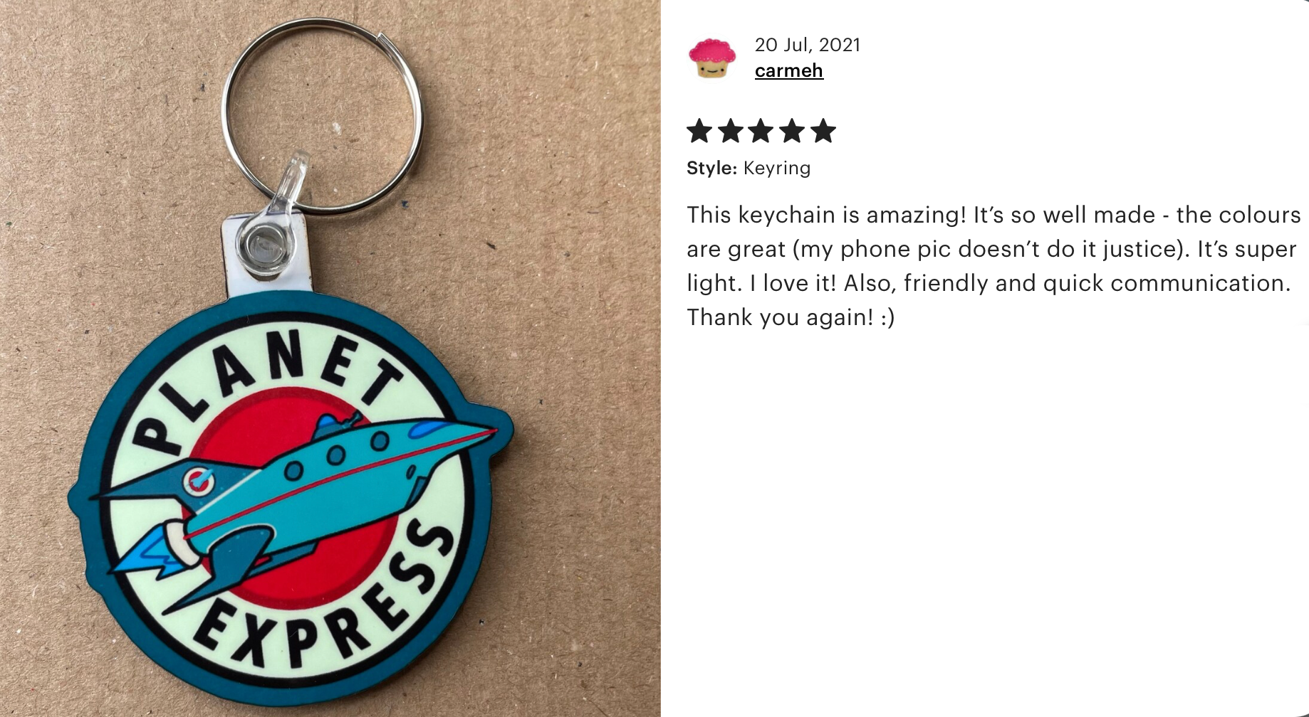 Take your keys on a one-way trip to the year 3000 with the Planet Express Keyring! Whether you’re delivering packages, escaping space bees, or just trying to survive another day with Bender, this keyring brings all the Futurama flair you need. Shaped like the legendary Planet Express ship, it’s perfect for fans who dream of working for Professor Farnsworth (or at least yelling “Good news, everyone!” at random). Lightweight, bold, and ready for adventure—this keyring is your official license to boldly go where only the weirdest deliveries go. 🚀💫💚