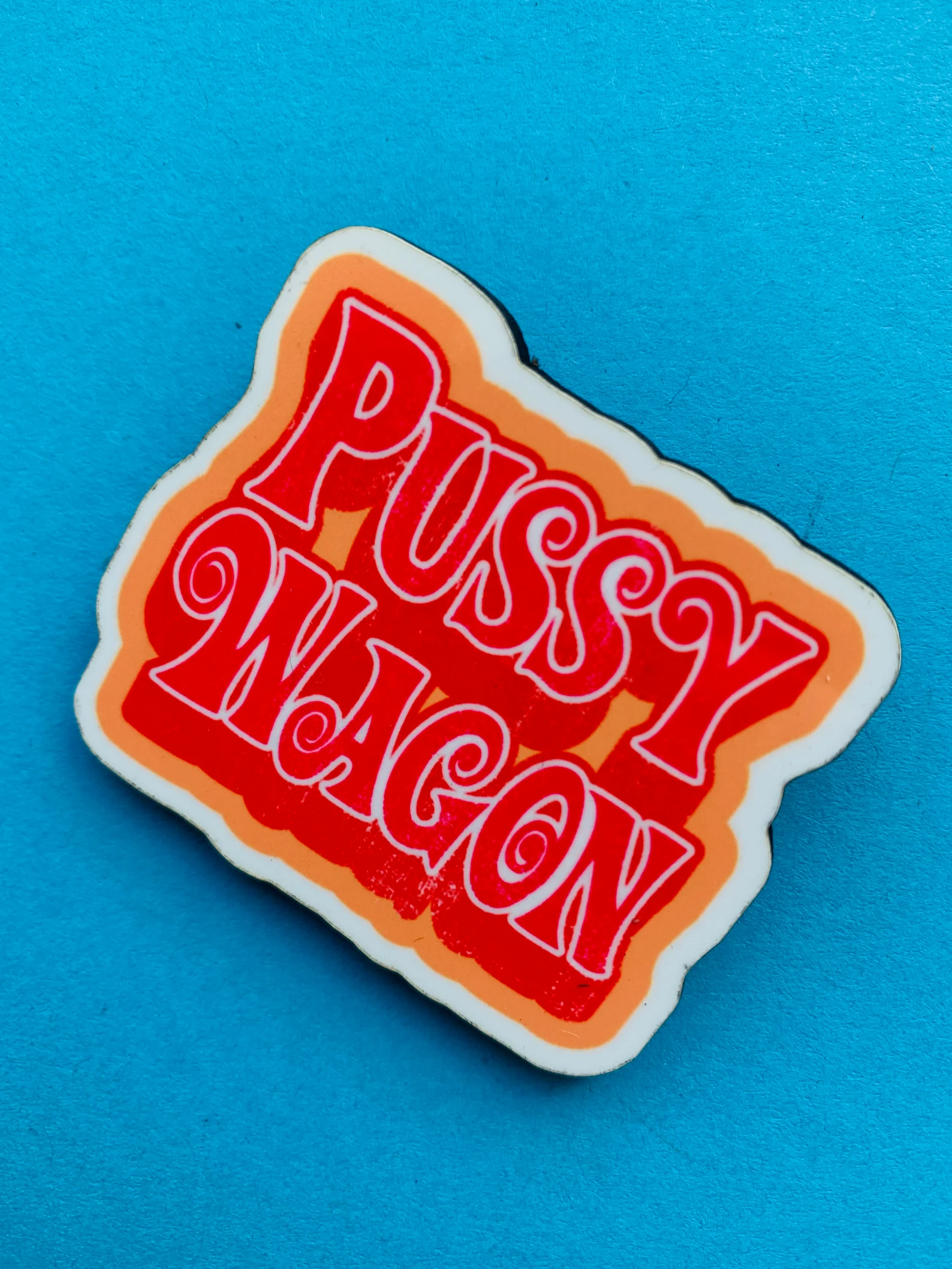 Rev up your style and unleash your inner Bride with the Pussy Wagon Pin Badge or Magnet the bold, badass accessory straight outta Kill Bill! With its iconic yellow and red flair and unapologetically cheeky attitude, it's a tribute to cinematic vengeance and unforgettable rides. Whether you’re a Tarantino super-fan or just love a statement piece that screams main character energy, the Pussy Wagon pin/magnet adds instant cool to your fridge, bag, or jacket. Attach it and let the world know you’re not just walking, you’re strutting away from an epic showdown for those who don’t ask for permission, they just drive. 💋🗡️💛