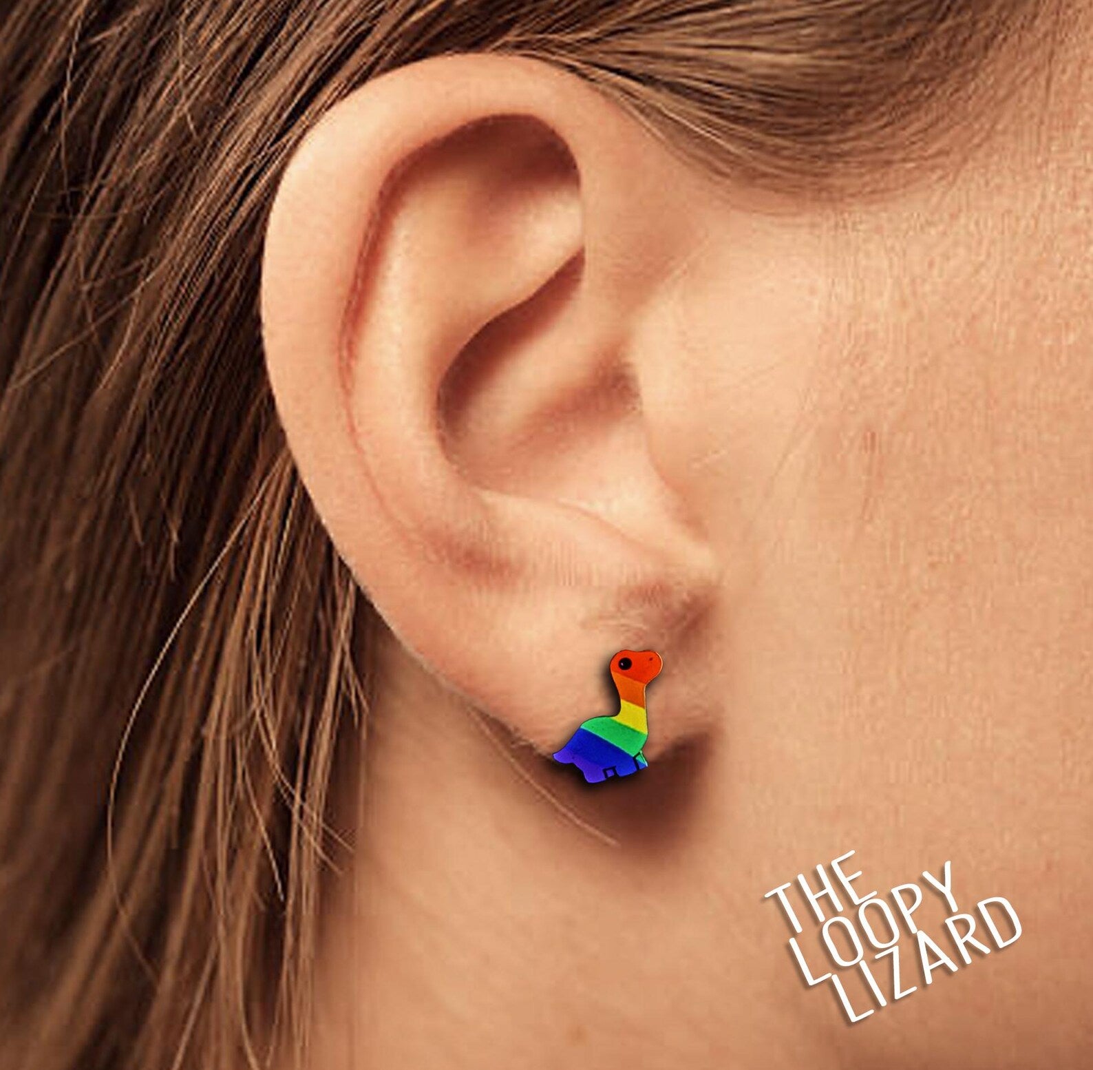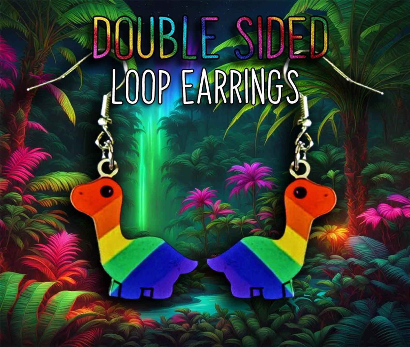 Get ready to stomp, sparkle, and show your pride with these Rainbow Dino Pride Earrings! These little prehistoric pals are decked out in vibrant rainbow colours, proving that dinosaurs weren’t just fierce—they were fabulous too! Whether you’re marching in a parade or just making everyday life a little more dino-mite, these earrings bring a perfect mix of roar and radiance. Who says dinosaurs went extinct? With these on, they’re alive and thriving in full colour! 🦕🌈💖
