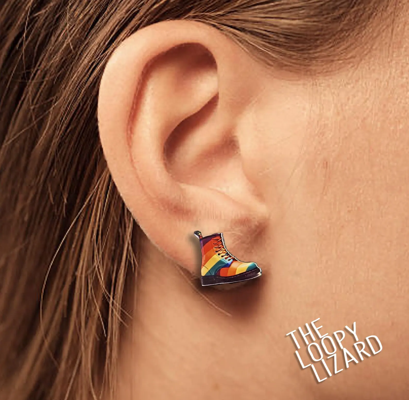 Step into a world of bold colour and badass style with these Rainbow Doc Martin Boot Earrings! Whether you’re strutting through the city or rocking out at a concert, these little boots will give your ears the ultimate fashion-forward flair. With vibrant colors that’ll make your lobes pop, these earrings are the perfect mix of edgy and playful! Perfect for anyone who’s got a bit of punk in their soul and a rainbow in their heart. So, lace ’em up and let your ears do the talking—because who says your shoes can’t sparkle in earring form? 🥾🌈✨