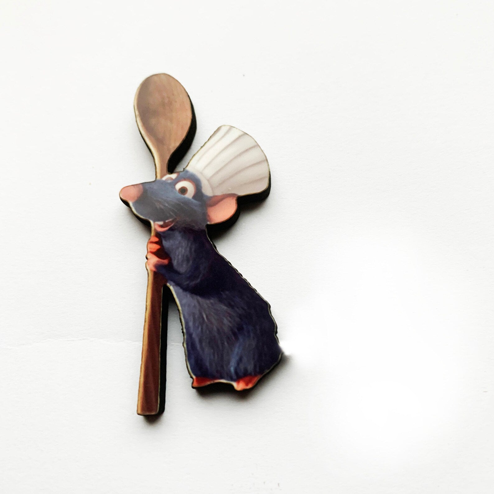Whisk up a dash of magic and a sprinkle of charm with this Remy Pin Badge or Magnet from Ratatouille! Featuring everyone’s favourite little chef in his iconic white hat, clutching a giant wooden spoon like he’s about to stir up your next great adventure (or a heavenly bisque), this is a recipe for cuteness. Whether you’re a foodie, a Disney dreamer, or just a rat who believes anyone can cook, Remy’s got your back—and your bag! Perfect for jackets, backpacks, or hanging proudly in your kitchen. Bon appétit! 🧀🐭💙