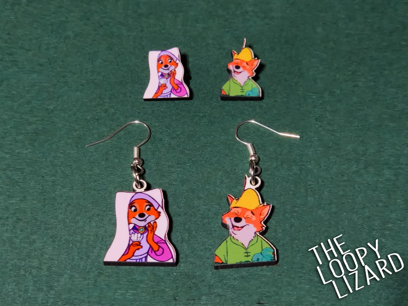 Get ready to steal the show with our Robin Hood and Lady Marian Earrings—the perfect way to add a little woodland charm and fox-tastic flair to your style! These earrings feature everyone’s favorite clever thief, Robin Hood, and his lovely lady, Marian, looking as sweet and swoon-worthy as ever. Whether you’re stealing hearts or just spreading some fairy tale love, these earrings will have you feeling like the most adorable duo in Sherwood Forest. So, grab them now and let your ears say, “Who needs gold when you’ve got this level of cuteness?” 🦊💖🏹