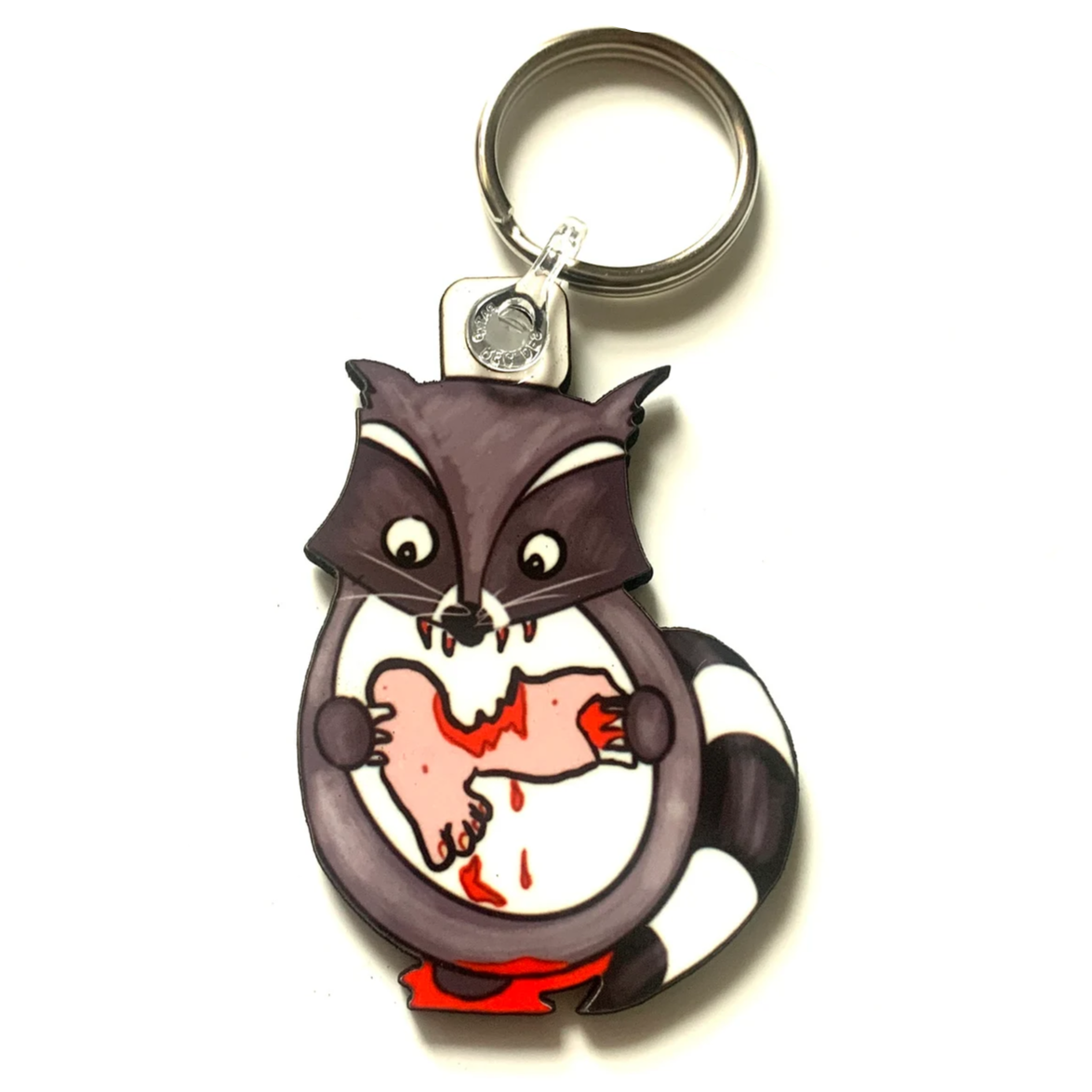 Get ready to unleash your wild side with the Savage Raccoon Keyring – the cheekiest, most mischievous little critter on the block! This cartoon raccoon isn’t just raiding your trash – it’s got a taste for adventure, and it’s munching on a human foot (yes, you read that right!). Perfect for fans of quirky, dark humor, this keyring is the perfect mix of bizarre and hilarious. Whether you’re a lover of the unexpected or just want a keyring that sparks some conversation, this savage raccoon will definitely keep things interesting. Clip it on your bag, keys, or backpack and let this little guy show you what it really means to go for the snack. 🦝🩸👣