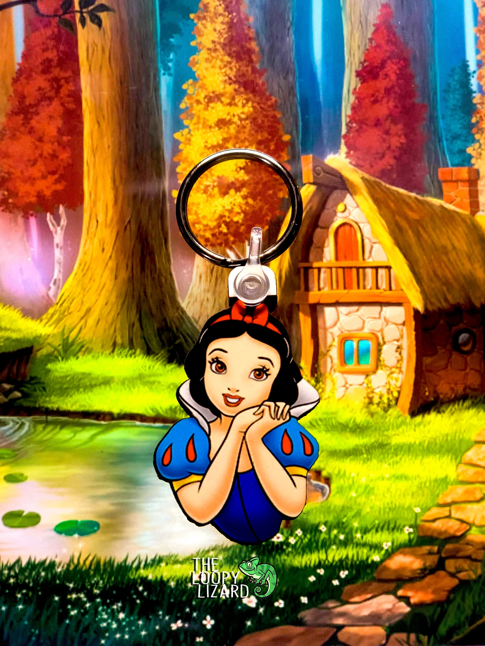 Step into a fairytale with the enchanting Snow White Keyring! This delightful charm captures the essence of the beloved princess with her rosy cheeks, red lips, and that iconic yellow, blue, and red dress. With her cheerful smile and kind heart, Snow White will remind you to always be brave, kind, and, most importantly, to stay true to yourself. Whether you’re a fan of the classic Disney magic or simply love a timeless tale, this keyring will add a touch of fairytale wonder to your day. It’s “One bite” away from becoming your favorite accessory! 👑🍎✨