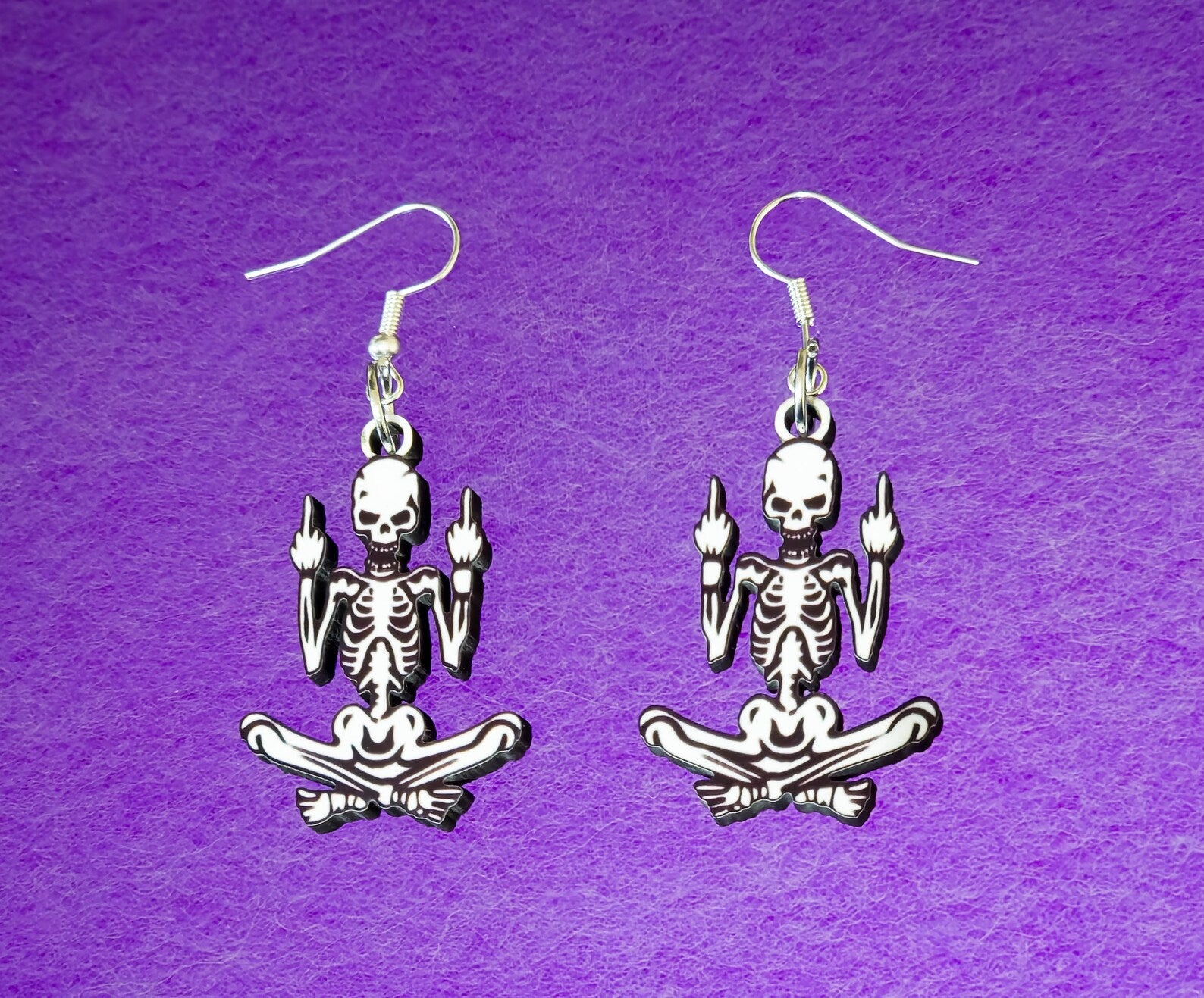 Get ready to raise some bones with our Swearing Skeleton Earrings! These cheeky little guys may be a little “rough around the edges,” but they’ve got loads of attitude—and they’re ready to tell it like it is! With their mischievous grin and sassy hand gestures, these earrings will add a touch of spooky fun to any outfit, making sure you stand out in the crowd. Whether you’re a fan of the dark side or just love a bit of humor in your accessories, these earrings are the perfect mix of spooky and funny. Get yours now and let these skeletons do the talking—just be warned, they’re not afraid to curse a little! 🖕💀⚰️