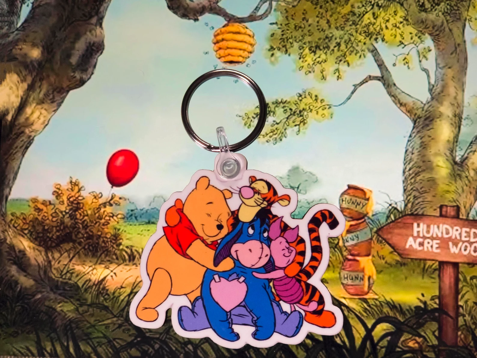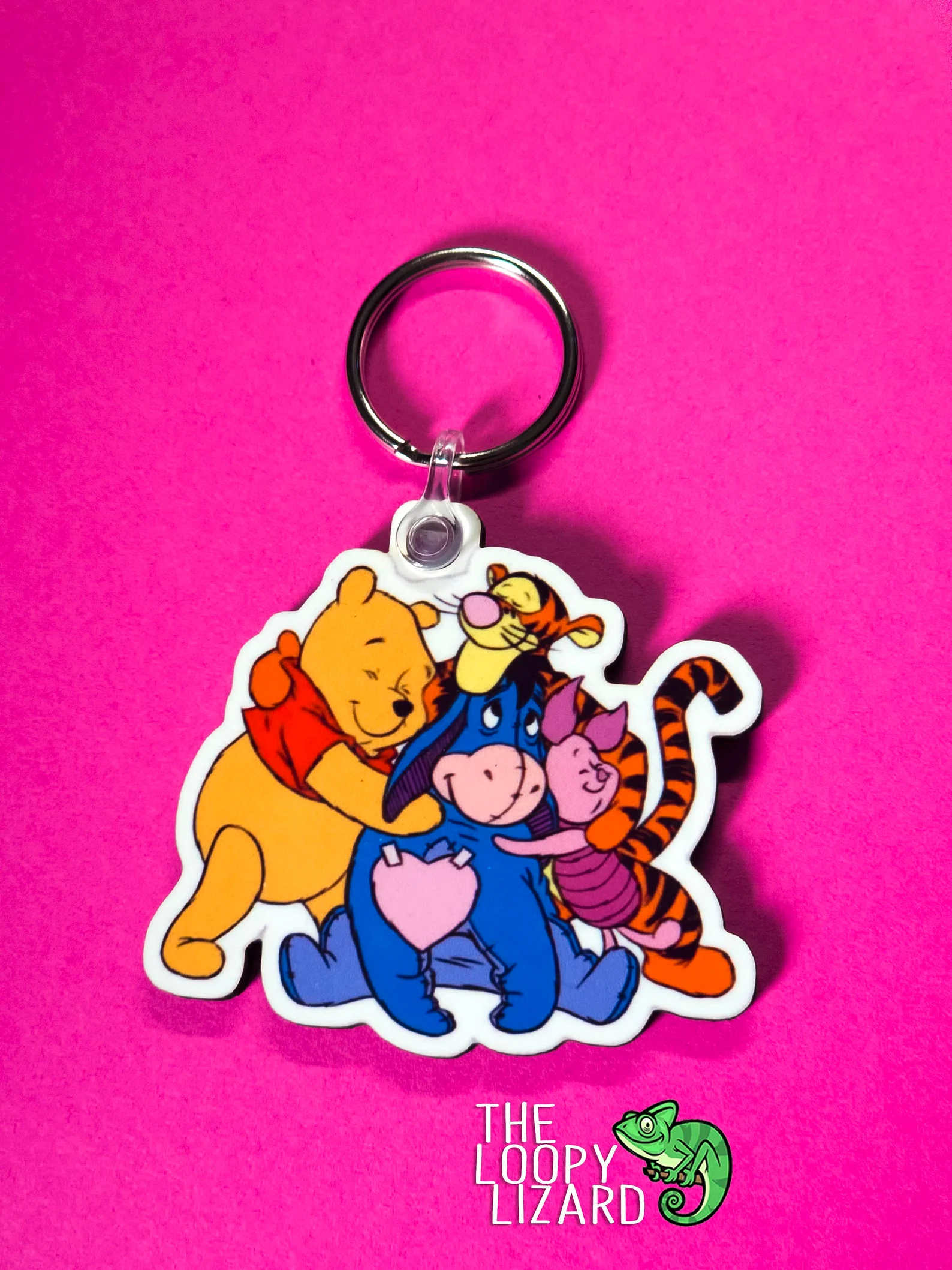 Get ready to embrace the sweetness with the Winnie the Pooh Group Hug Keyring! This adorable little charm brings together all of your favourite Hundred Acre Wood pals, from Pooh to Tigger, Piglet, and Eeyore, all wrapped up in a warm, fuzzy hug. Perfect for reminding you that no matter where life takes you, you’re never alone—you’re always surrounded by friends. Whether you’re looking to add some cuteness to your keys, bag, or backpack, this keyring is the ultimate heartwarming accessory. Grab one today and let the cuddles begin! 🧸💖🌟